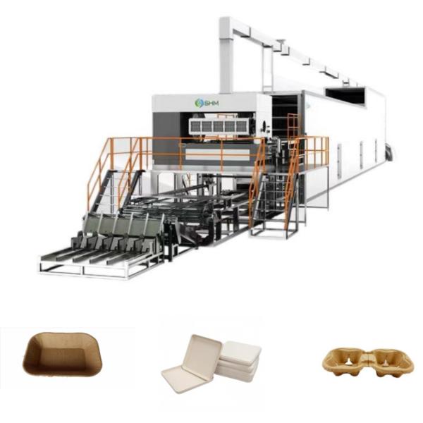 SHM high-speed waste paper recycling fruit tray forming and making machine is a specialized piece of equipment designed to efficiently recycle waste paper and convert it into various types of paper pulp trays, including fruit trays. These machines have distinct features that make them valuable in recycling and packaging industries.